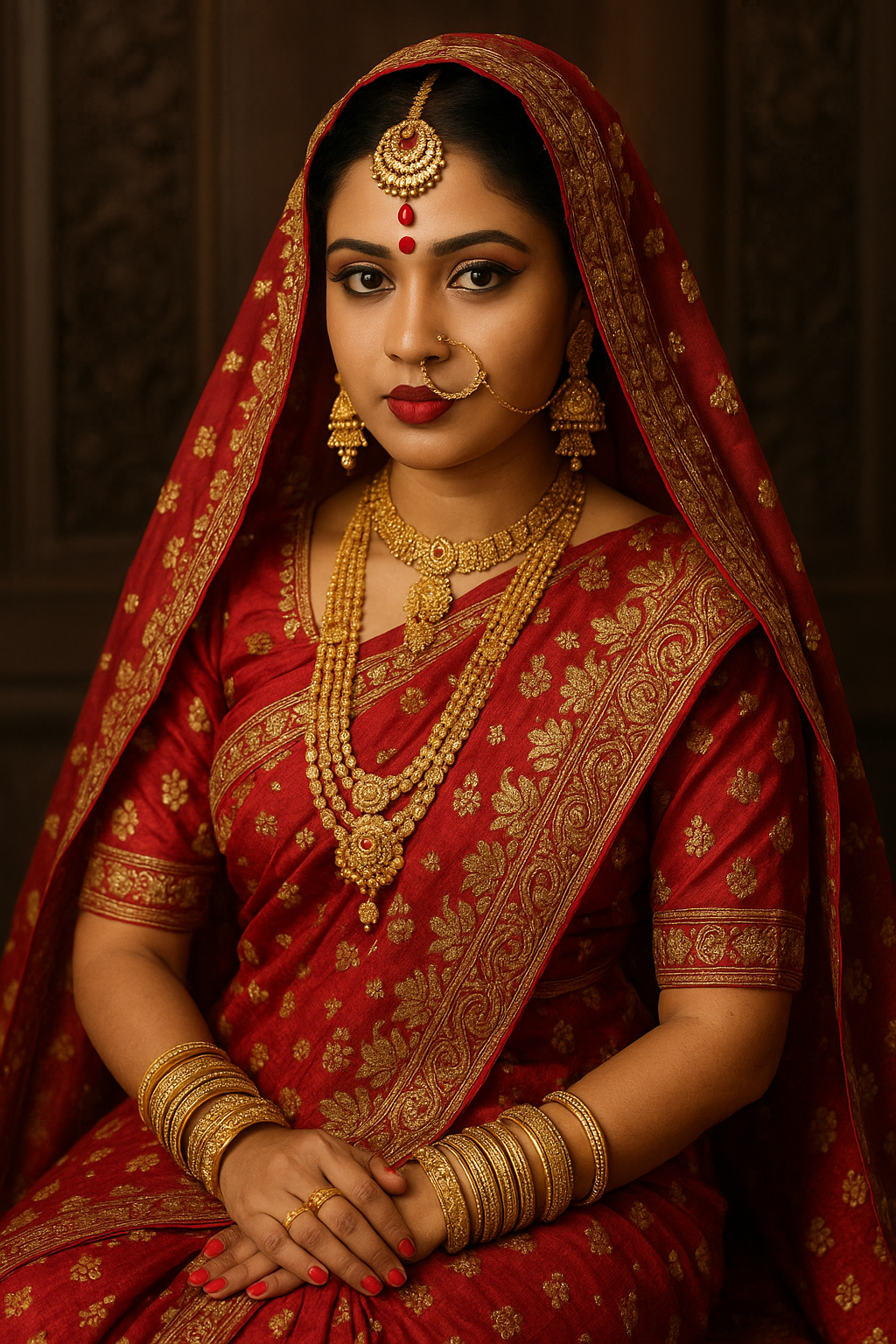 전통 의상은 방글라데시 결혼문화에서 매우 중요한 요소입니다. 여성은 주로 빨간색 또는 짙은 분홍색의 사리(Saree)를 착용하며, 금실 자수나 화려한 장식이 있는 고급 직물을 사용합니다. 신부의 복장은 지역과 계층에 따라 차이가 있지만, 기본적으로 눈부신 장신구와 화장, 헤나(henna)로 장식된 손과 발이 공통된 특징입니다. 신부의 장신구는 보통 금으로 된 목걸이, 귀걸이, 이마 장식(티카), 코걸이 등이 포함되며, 이들은 부의 상징일 뿐 아니라 여성의 아름다움과 순결을 나타냅니다. 헤나는 결혼 전날 ‘메힌디(Mehendi)’라는 별도의 행사에서 그려지며, 여성들끼리의 축제처럼 치러집니다. 신랑 역시 화려한 셔르와니(Sherwani)를 착용하고 터번과 같은 머리장식을 하며, 때로는 검을 차고 등장하기도 합니다. 최근에는 전통의상을 유지하면서도 웨스턴 수트를 혼합한 스타일도 인기를 끌고 있어, 전통과 현대의 조화를 추구하는 모습이 두드러지고 있습니다.